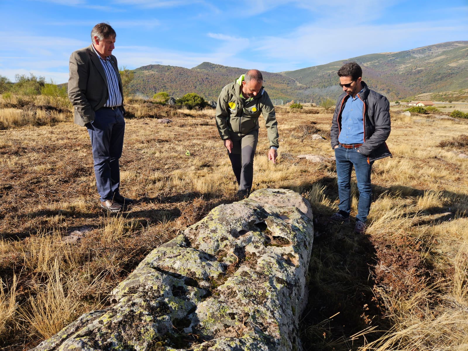 El arqueólogo responsable, Jesús Torres, Director científico del IMBEAC y del proyecto, confirmó la magnitud del descubrimiento: más de 200 túmulos, dólmenes, altares y otras estructuras distribuidas en una ladera, en una secuencia única que abarca desde el Neolítico Final hasta la Edad del Hierro. Algunos restos incluso conservan cazoletas rituales excavadas en la roca, relacionadas con libaciones y usos simbólicos que podrían tener continuidad en el tiempo hasta nuestros días.